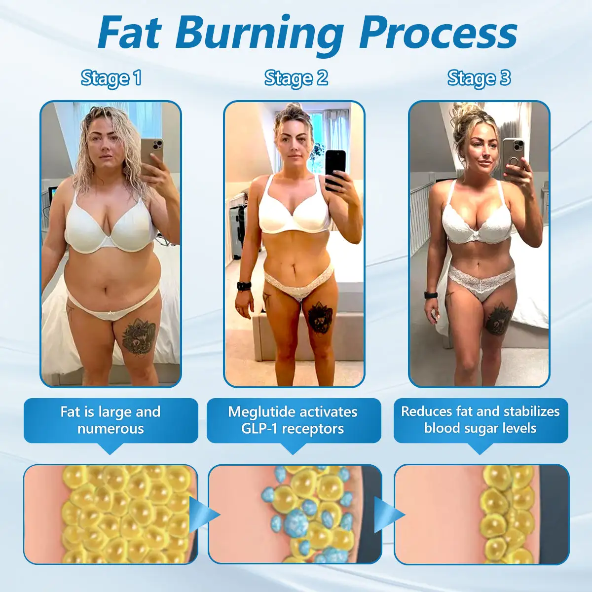 Meglutide, combined withย apple cider vinegar and the powerful Moringa extract, helps the body utilize fat stores more effectively for energy. By improving insulin sensitivity, it accelerates fat burning, especially during calorie restriction or increased physical activity. The apple cider vinegar works to stabilize blood sugar levels, preventing excess glucose from being stored as fat.